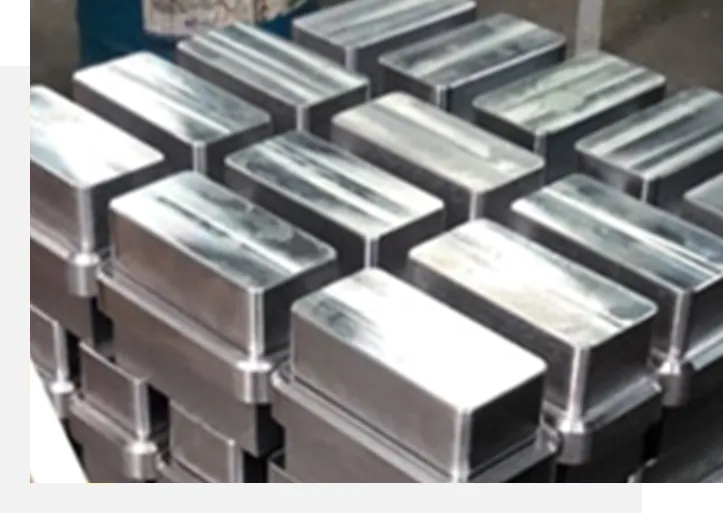Stacked metallic blocks arranged in rows, viewed from above.